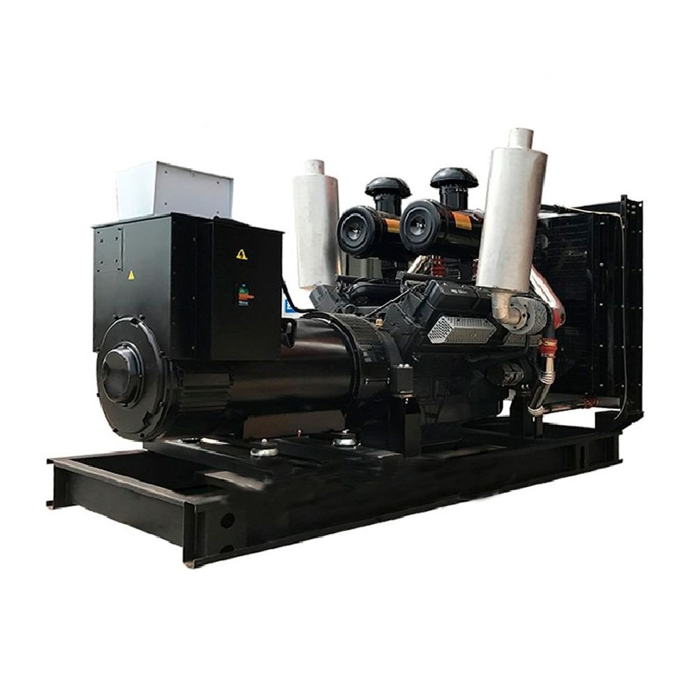 стационарный трехфазный дизель генератор в составе: первичного двенадцатицилиндрового дизельного двигателя водяного охлаждения с электронной регулировкой частоты вращения Woling WLV1200, объемом 30,2 литра и номинальной мощностью 920кВт, с промышленным глушителем и стандартным радиаторным блоком охлаждения, синхронного бесщеточного генератора Azimut ZLV6E номинальной мощностью 800 кВт c автоматической регулировкой напряжения,