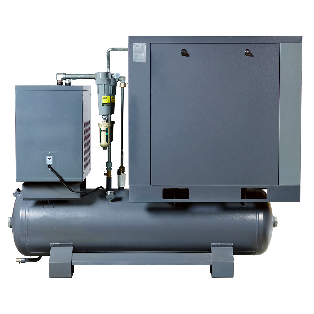Универсальное решение для получения технически сухого сжатого воздуха. Комплектация включает в себя воздушный ресивер, рефрижераторный осушитель и два линейных фильтра.
