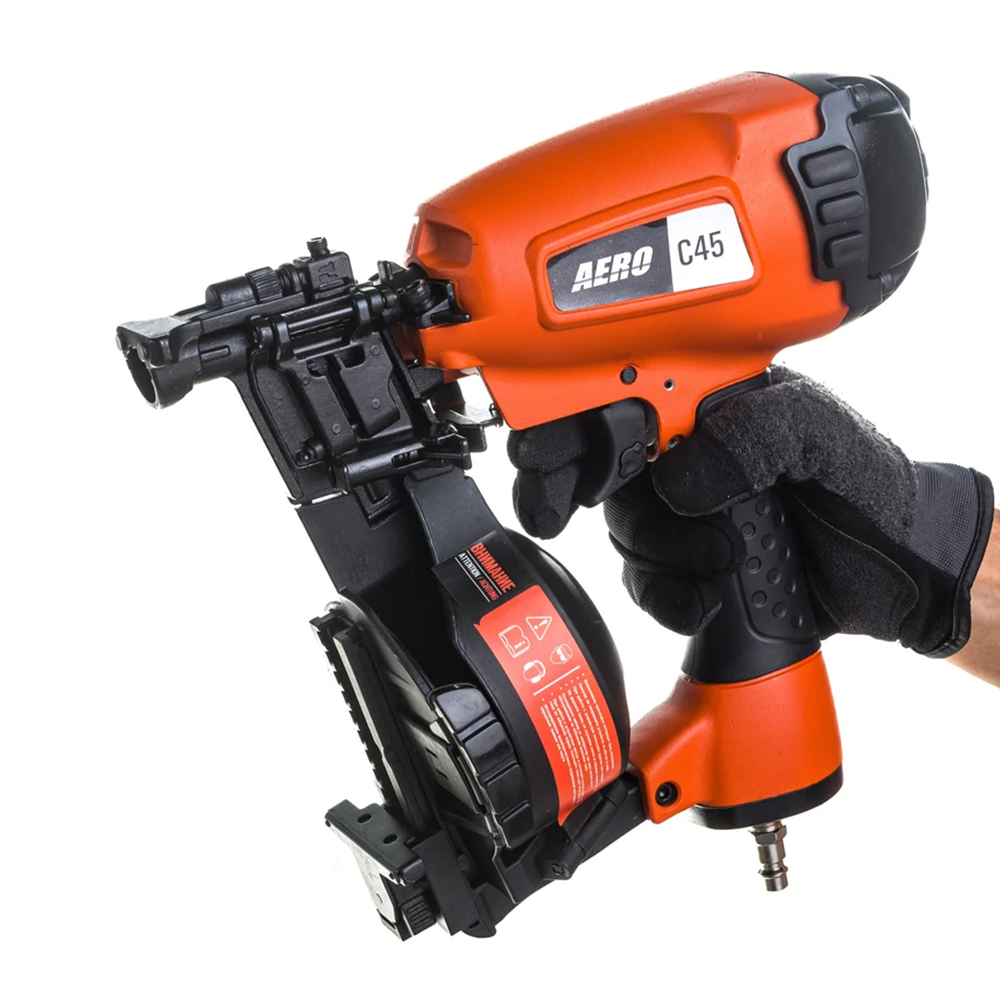 Пневматический пистолет FoxWeld AERO C45 — мощный профессиональный инструмент для надежного забивания гвоздей в любую породу дерева.