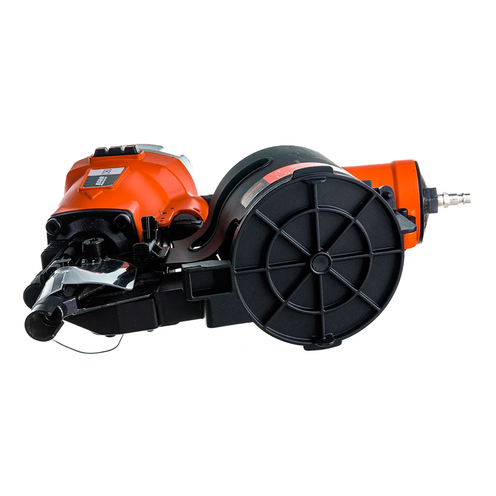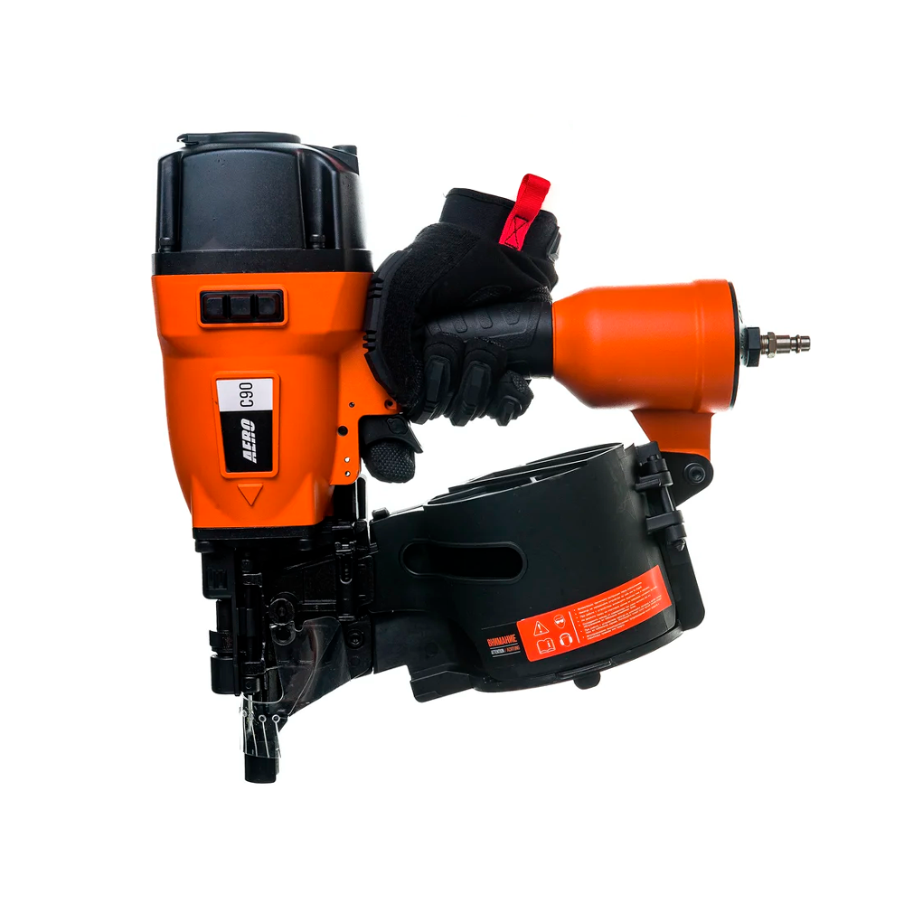 Пневматический гвоздезабивной пистолет FoxWeld AERO C90 мощный профессиональный инструмент для надежного забивания гвоздей в любую породу дерева. Рекомендован к применению при изготовлении и ремонта паллет (поддонов) и других изделий из дерева, таких как тара, ящики и упаковка. Предназначен для монтажа мягкой черепицы, кровельной дранки, обустройства заборов и черновых полов. Контактный предохранитель защитит от случайного выстрела. Удобный спусковой крючок обеспечит быструю работу. Поворотный дефлектор, находящийся на крыше инструмента, позволит выбрать наиболее комфортное для пользователя и окружающих направление выхода воздуха. Эргономичная форма рукоятки и накладка с демпфирующим и антифрикционным действием позволяют пользователю не чувствовать усталость и дискомфорт во время работы.