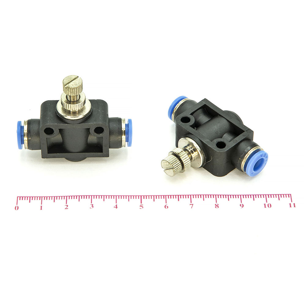 SCF – модель фитинга (трубка-регулятор-трубка): прямой фитинг-соединитель с нажимным цанговым соединением с двух сторон и регулятором.