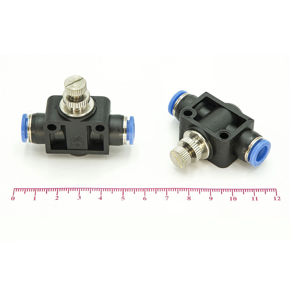SCF – модель фитинга (трубка-регулятор-трубка): прямой фитинг-соединитель с нажимным цанговым соединением с двух сторон и регулятором.